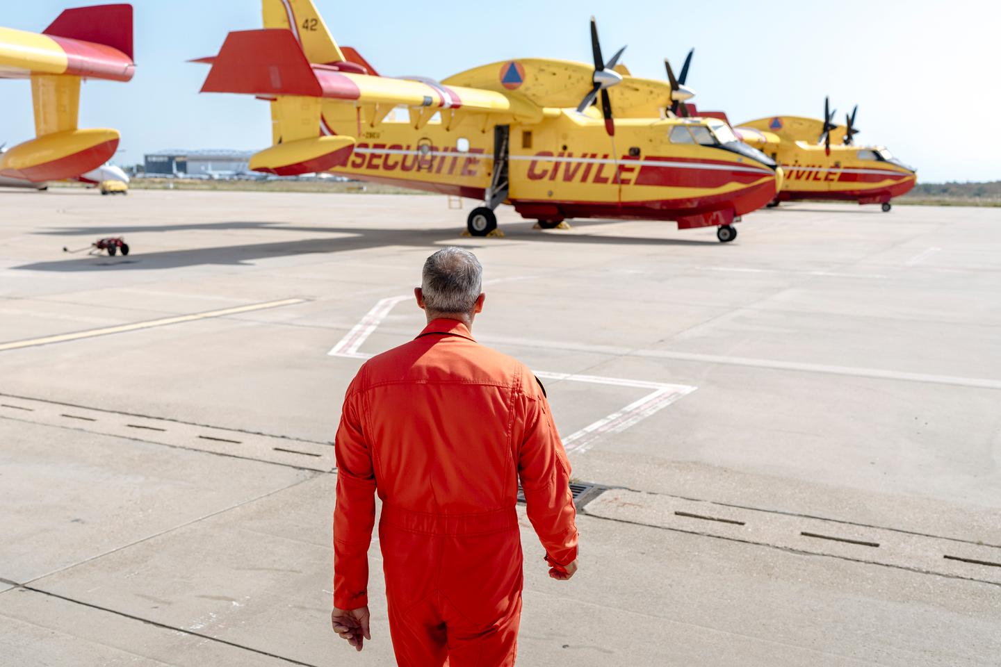 Jean-Marc Mateo, pilote de Canadair et officier de sécurité aérienne du secteur Canadair, sur la base aérienne de la Sécurité civile de Nîmes-Garons (Gard), le 8 août 2025. LEWIS JOLY POUR « LE MONDE »