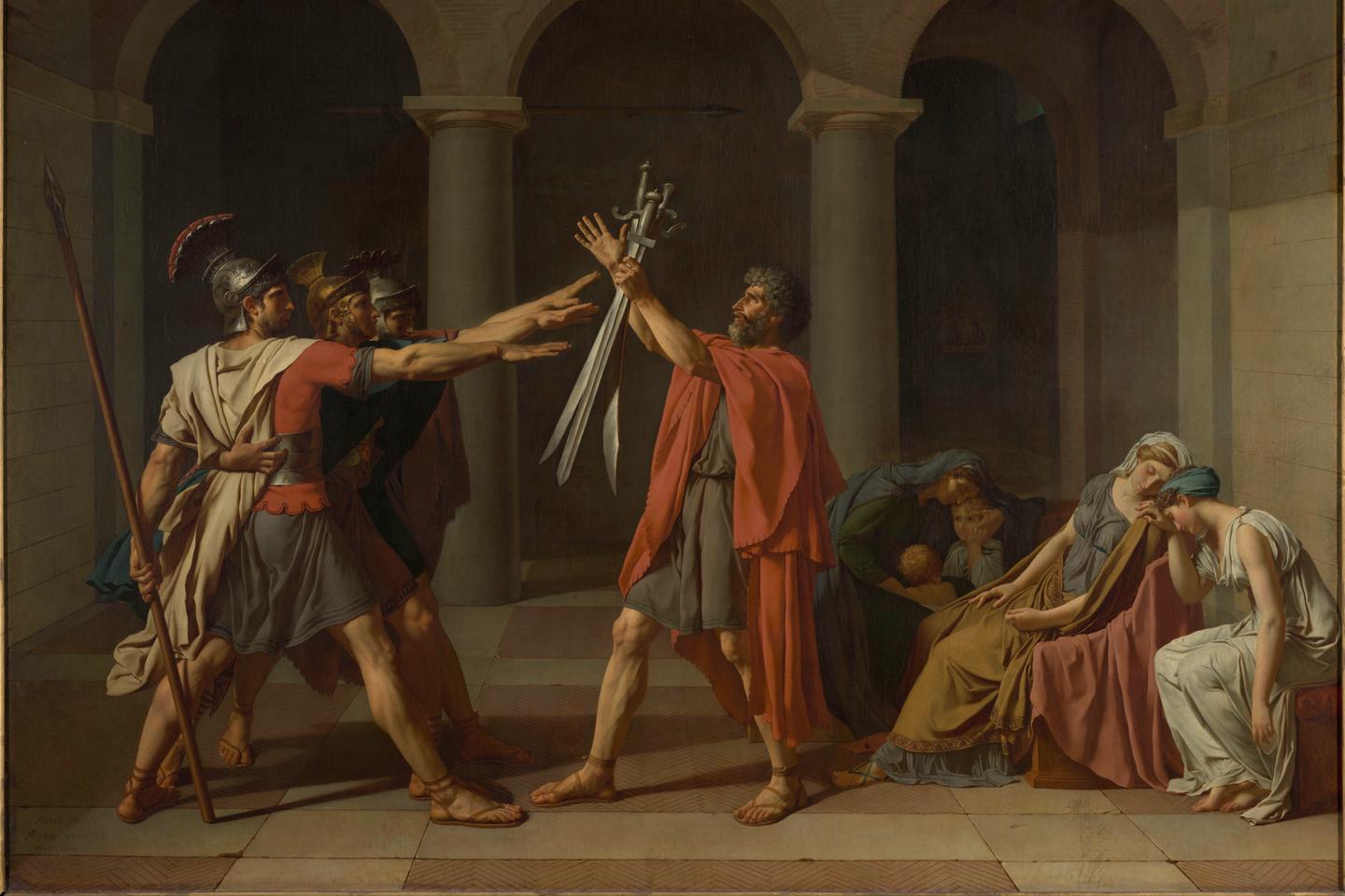 « Le Serment des Horaces » (1784), de Jacques-Louis David. GRANDPALAISRMN/MICHEL URTADO/PARIS/MUSÉE DU LOUVRE