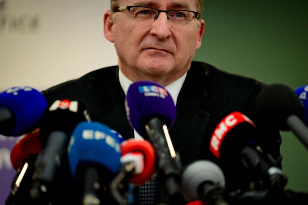Le procureur de la République Thierry Dran, lors de la conférence de presse sur l’enquête portant sur la mort de Quentin Deranque, au palais de justice de Lyon, le 16 février 2026. OLIVIER CHASSIGNOLE/AFP
