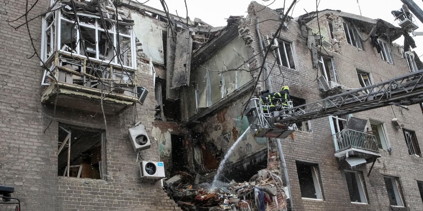 Après les frappes russes en Ukraine, 20 immeubles résidentiels et l’ambassade du Qatar endommagés à Kiev Un immeuble résidentiel après l’attaque russe …