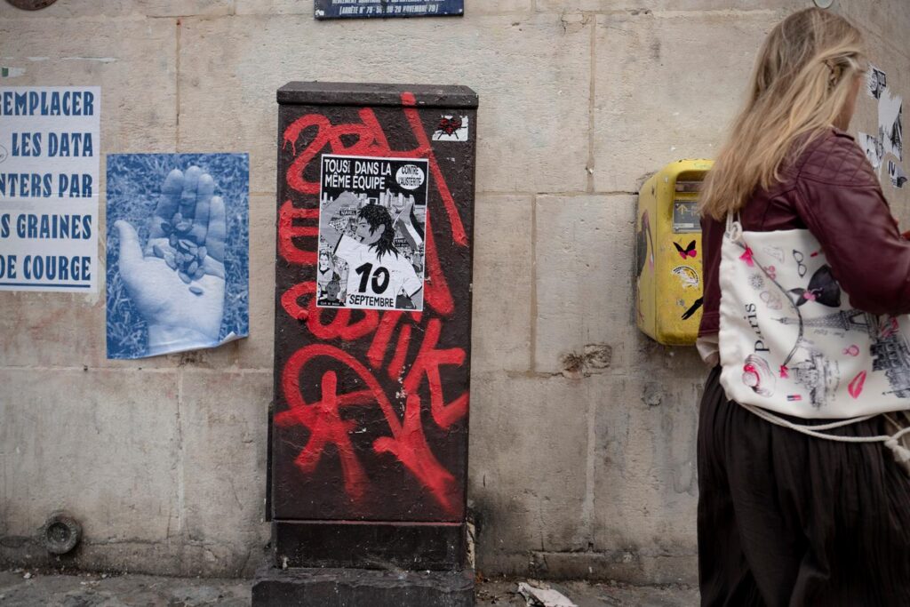 Une affiche de mobilisation pour le mouvement Bloquons tout, à Paris, le 4 septembre 2025. RAFAEL YAGHOBZADEH POUR « LE MONDE »